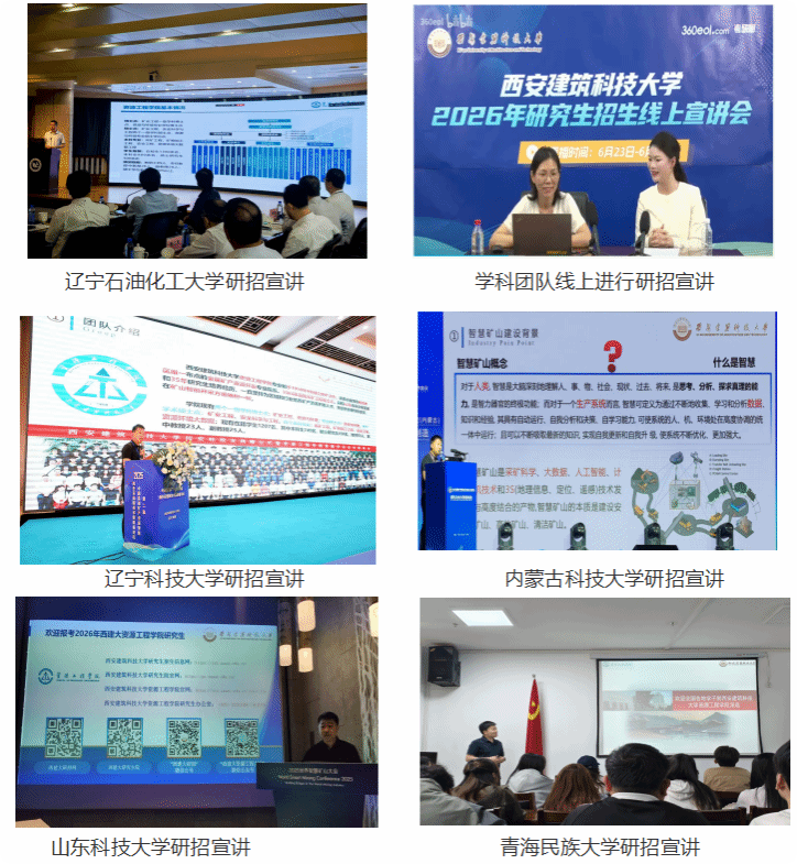 为吸引优秀生源,提升研究生招生质量,BOB·体育综合APP下载持续开展2026年研究生招生宣传工作。5月-9月期间,招生工作领导小组组长顾清华教授、副组长江松教授、各学科团队通过线上、线下的方式先后赴青海民族大学、山东科技大学、辽宁科技大学、西藏大学、内蒙古科技大学、辽宁石油化工大学6所高校开展研究生招生宣传。