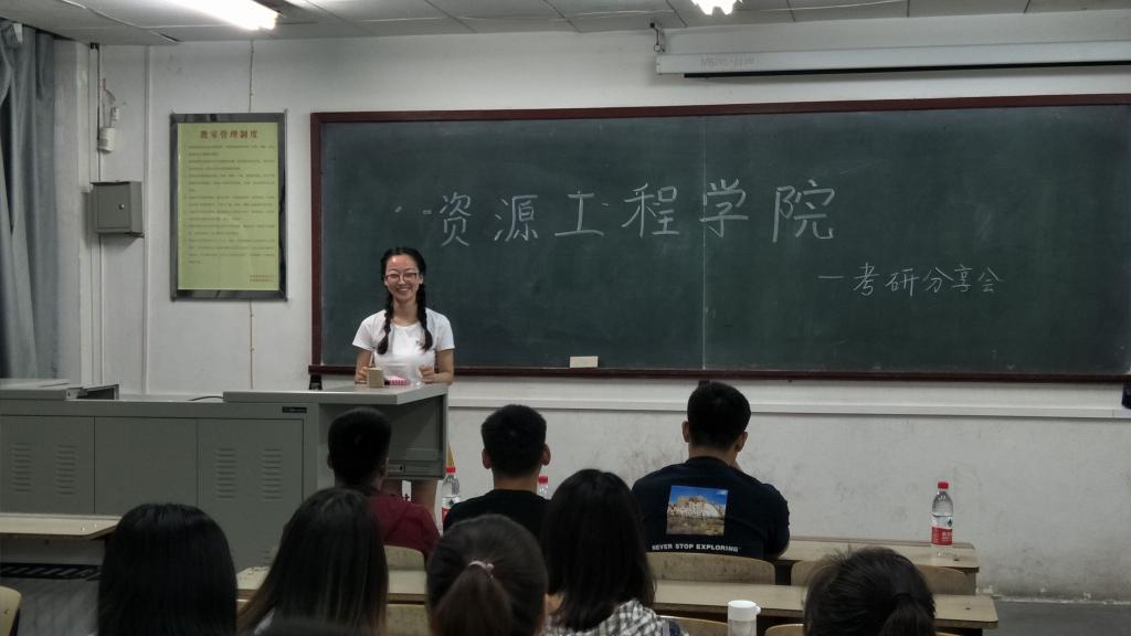 六个月前的十二月,15级资源学子在大家的祝福中昂首迈向考研战场。六个月后的初夏,经过残酷的初试、复试历练,他们带着自己的战果凯旋,将这份接力棒传递给学弟学妹。活动在已被中南大学录取的刘涛的自我介绍中拉开帷幕。他详细地分享了自己的备考经历,大到考研准备时间划分,小到考研书的推荐。在备考过程中,他很重视心态调整的问题,会定下小目标并且奖励自己。已被中国科技大学录取的刘涛补充到在漫漫考研路上,要找到与自己契合的研友,互相鼓励监督是提升学习效率的捷径。刘泽梁回忆自己的考研经历,他的关键词就是“规划”。他考研的准备时间较为紧迫,但是有条理的规划让他在有限的时间内