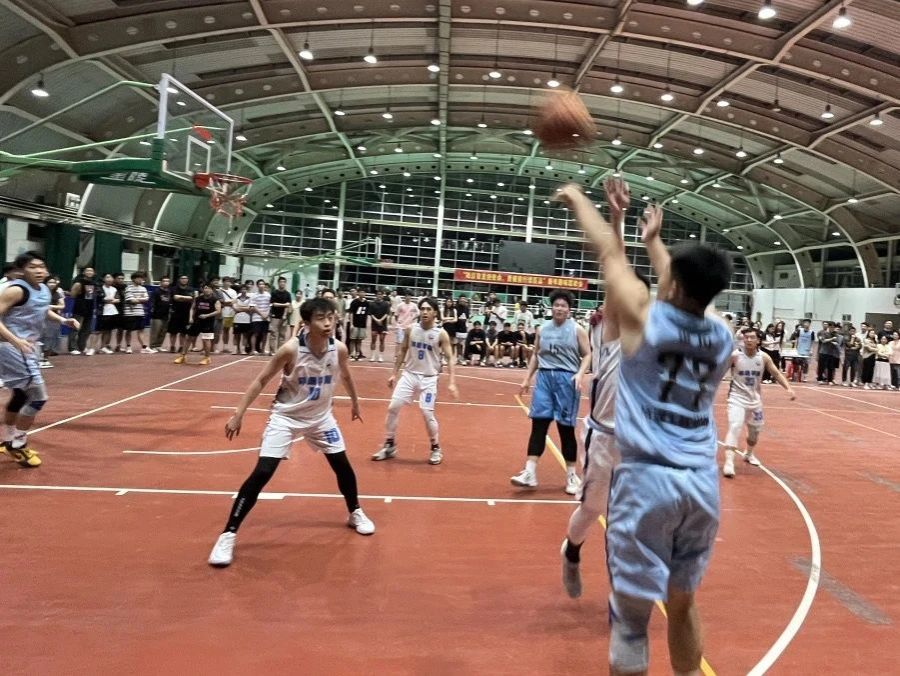 来到下半场比赛,冶金学院22号球员率先得分,资源学院0号球员在14号和77号球员的助攻下,投进三分球。双方球员在赛场上的喝彩声中连续得分。比赛结束,资源学院以净胜分6分的优势赢得本轮系列赛小组第一,率先出线。