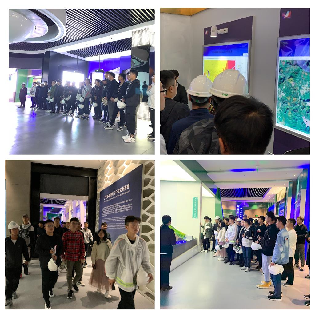 走进金徽矿业,首先映入眼帘的是依地势而成的高山流水瀑布,看不到漫山的尘土,也听不到机器的轰鸣,整个矿山绿色环绕,鲜花点缀,是深山中的一座大花园。紧接着,在讲解员的带领下依次参观了科技馆、选矿车间、矿工服务楼和职工公寓。同学们了解到郭家沟大型铅锌矿床位于西城矿田东部,该矿床处于区域构造强烈的活动带中, 后期改造作用显著。矿体产状、规模及厚度变化较大, 矿石结构构造的多期性特征较明显,具有较大的寻找盲矿体的潜力。郭家沟铅锌矿从项目筹备阶段开始,就按照国家级绿色矿山标准,建设机械化水平高、自动化控制先进、节能环保型数字化绿色旅游矿山。