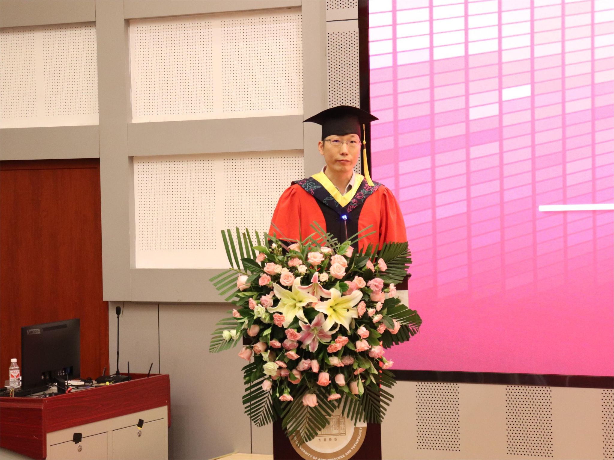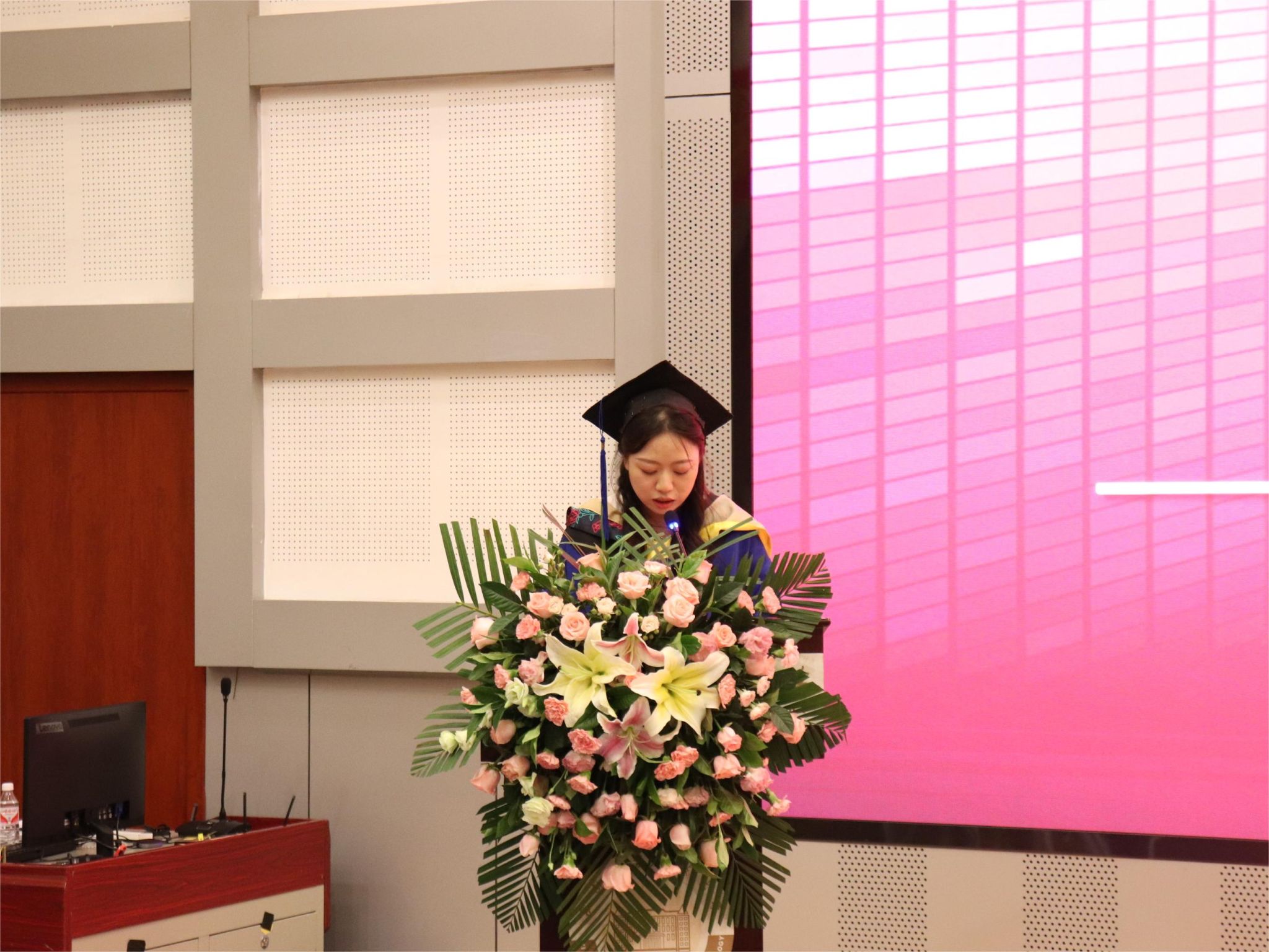 教师代表矿物加工系邓莎副教授叮嘱毕业生们要脚踏实地、不忘初心,将“自强、笃实、求源、创新”的校训和“四实”校风深深烙印在心中,以开放的心态和抖擞的精神迈向未来,成为时代先锋,国家栋梁。2021级研究生马菁遥、2020级本科生王胤喆作为毕业生代表发言,表达了对母校和母院的感激,对老师和同学的不舍,将永远铭记“自强不息、锐意进取、奋发有为、淬火成钢”的资源精神,并祝愿母校和母院蓬勃发展,再创辉煌。