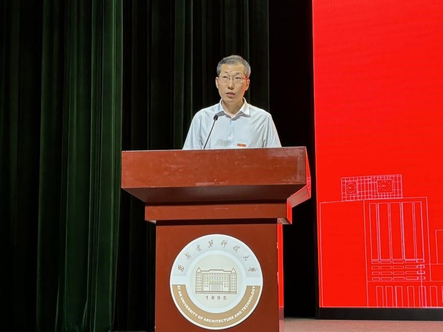 副院长(主持工作)顾清华代表全院师生向24级新生的到来表示热烈的欢迎和衷心的祝贺。顾清华向学院24级新生介绍了学院的历史沿革、学科建设、师资力量和人才培养等情况。他以“向新而行,奋楫争先”为主题对同学们提出了三点“新”希望:一是塑造堪当民族复兴重任时代新人的新品格;二是养成自觉研学、自主研学、自创研学的新范式;三是强化交流协作、服务社会的新实践,勉励同学们在新的赛道上勇敢地向新而行,做挺膺担当奋斗者。