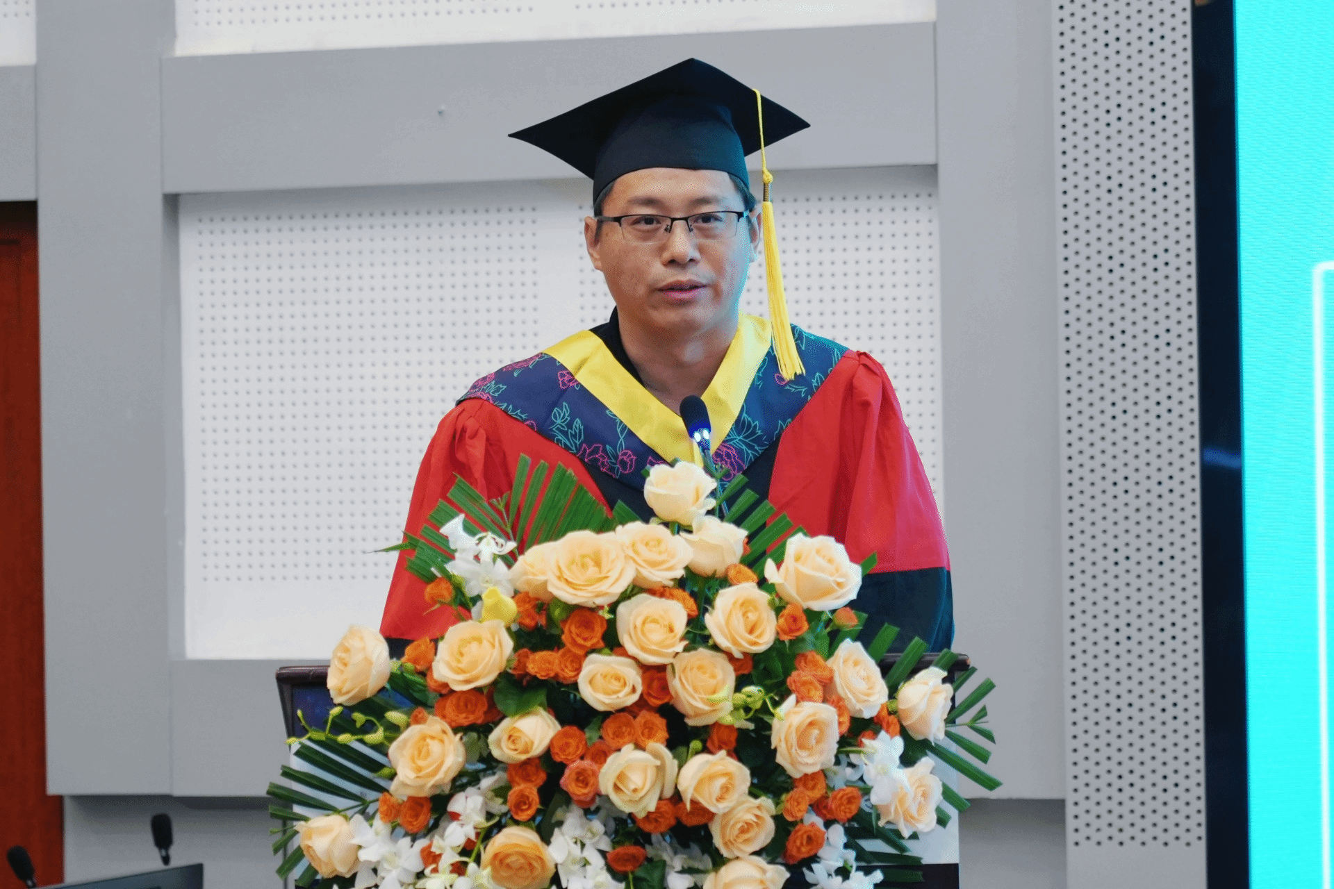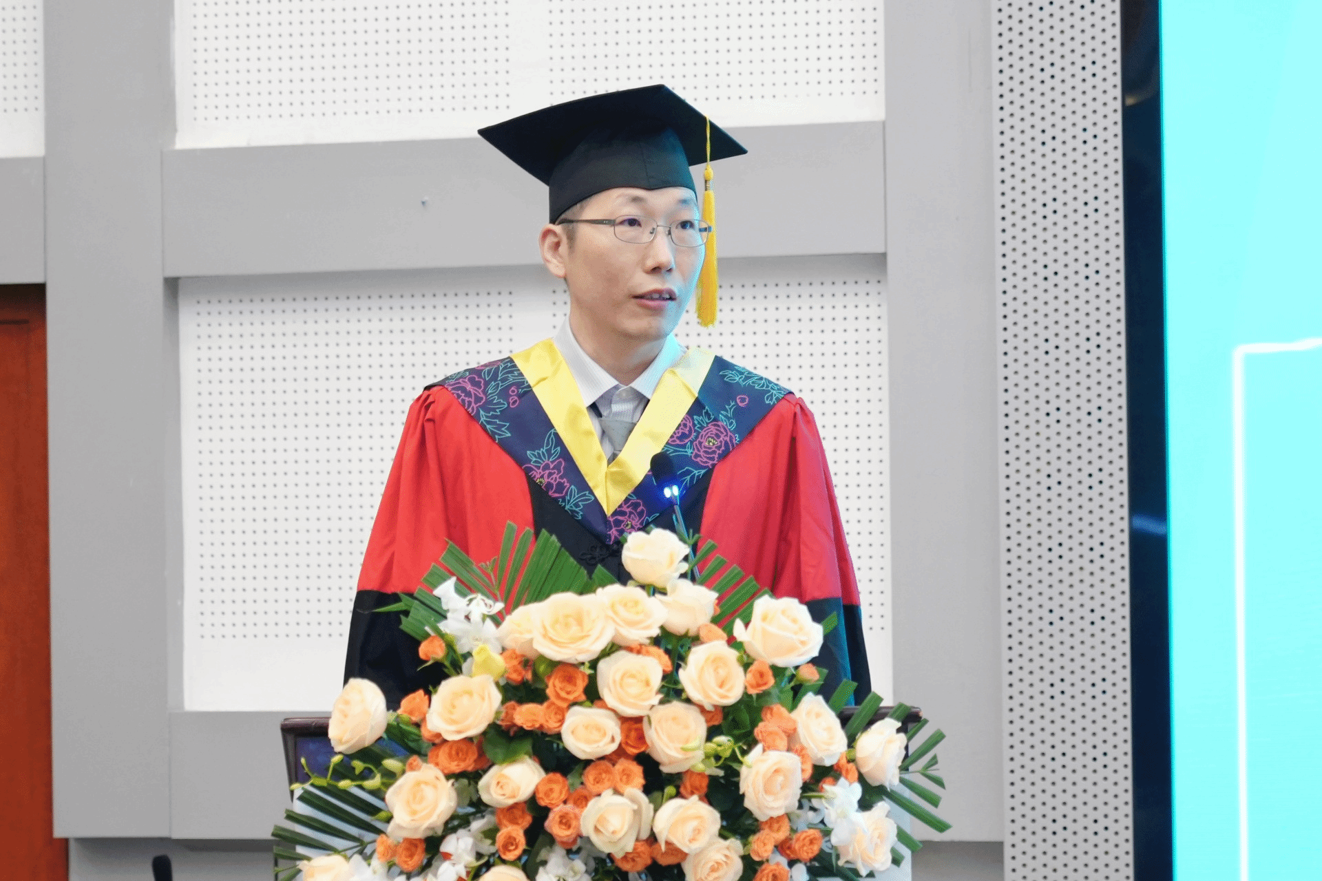 教师代表大数据管理与应用系阮顺领在发言中,向全体毕业生表达了殷切期望。他嘱咐同学们要时刻牢记“自强不息、锐意进取、奋发有为、淬火成钢”的资源精神,将课堂所学理论知识积极运用到社会实践中,并鼓励毕业生们在未来的人生道路上,勇于迎接挑战,不断锤炼扎实本领,努力实现自己的人生理想,让青春在不懈奋斗中绽放出绚丽光彩。
